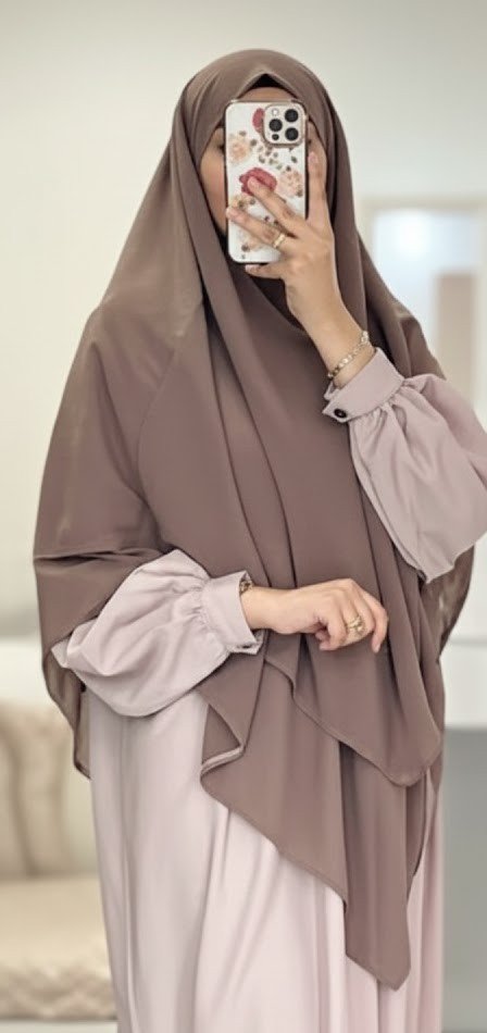 الخمار مصمّم بتفصيل أدوار أنيقة تمنحك شكل محتشم وفي نفس الوقت شيك ومميز بدون أي مجهود.