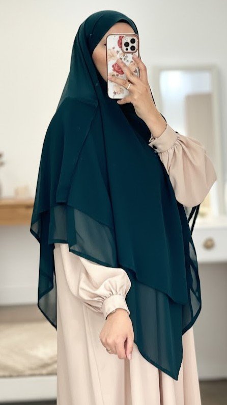 الخمار مصمّم بتفصيل أدوار أنيقة تمنحك شكل محتشم وفي نفس الوقت شيك ومميز بدون أي مجهود.